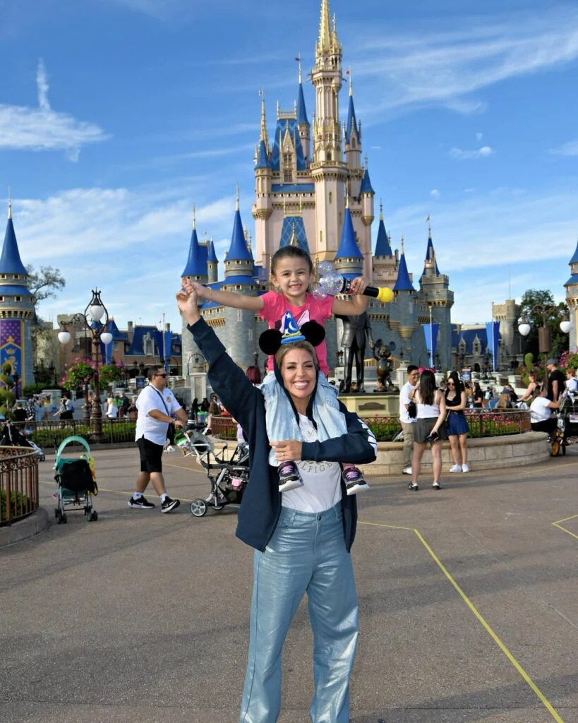 “Ella es mi princesa, Disney el escenario perfecto para nuestra historia y la magia es aún más especial cuando la veo brillar en sus ojos. Hola amiguitos nuevamente. Qué alegría volver a vernos”, escribió en el pie de foto del carrete, que arranca con una foto de madre e hija junto a Minnie Mouse con un vestido de gala, y también celebrando que estará con Belén Ludueña en Mujeres Argentina, en la misma pantalla.