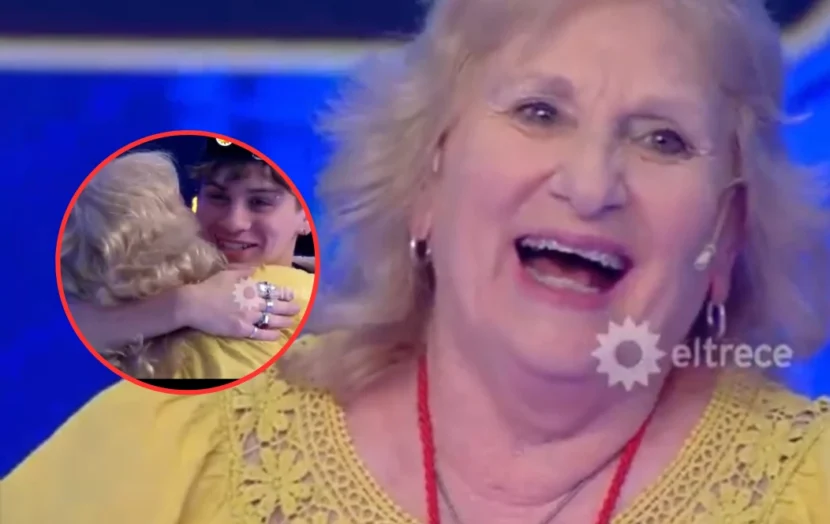 En ese momento, el conductor lanzó: “Ahora que venga tu nieto a felicitarte y saludarte. Que venga tranquilo”. El joven subió al escenario y caminando logró abrazar a su abuela que llegó a las instancias finales.