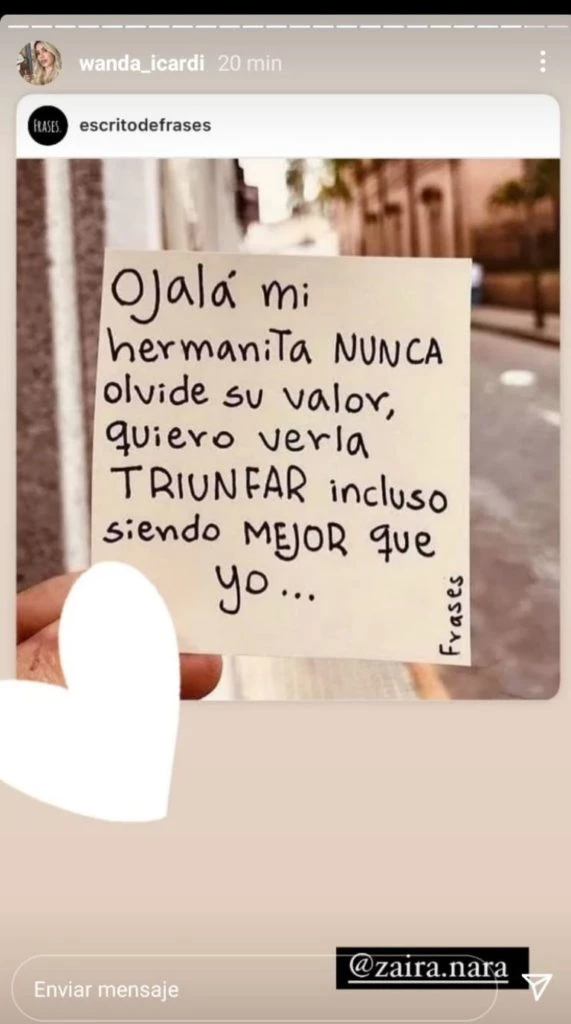 ¿Qué expresión de deseo dejó en sus redes? "Ojalá mi hermanita nunca olvide su valor. Quiero verla triunfar incluso siendo mejor que yo", reza la notita que publicó la empresaria en sus historias de Instagram, unas palabras de aliento muy particulares para este momento, el peor de las dos.