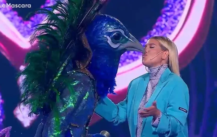 El big show presenta cada noche actuaciones de coloridos personajes que esconden a figuras del espectáculo, la farándula y los medios. En la noche de este miércoles 14 de septiembre Wanda no pudo contenerse y se chapó al Pavo Real.