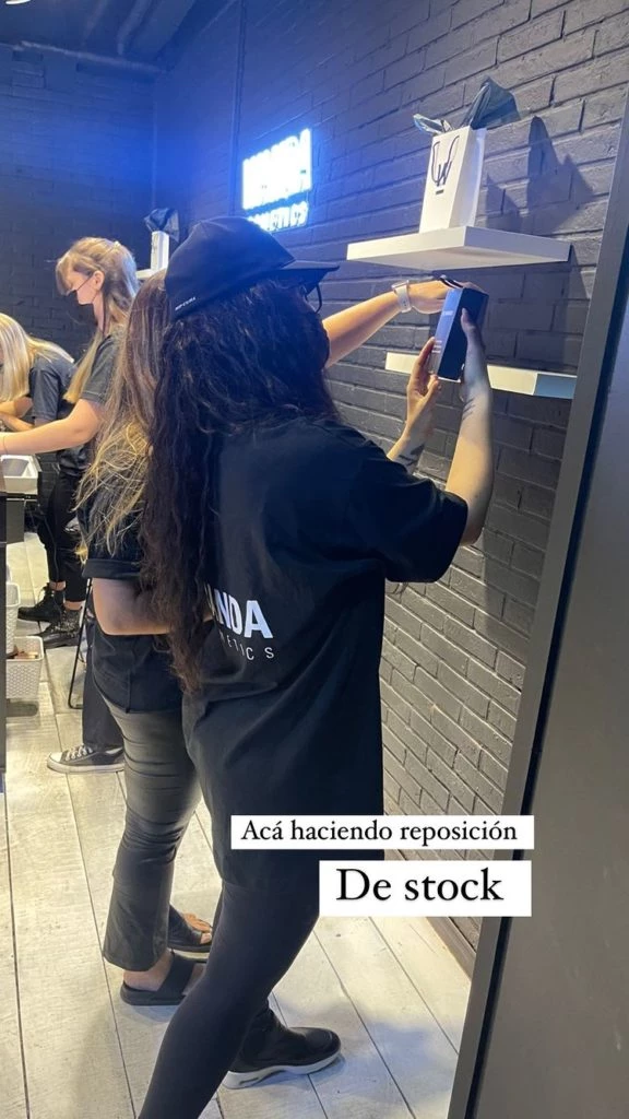 En una historia que compartió en Instagram, se la ve de espaldas y muy concentrada con su personaje. "Acá haciendo reposición de stock", escribió junto a la imagen. Además, invitó a sus millones de seguidores a encontrarla en su local en Argentina. “¿Me reconocerán? Nos vemos en el Abasto”, escribió. Minutos después, mostró que varias personas la reconocieron y quisieron sacarse una foto con ella.