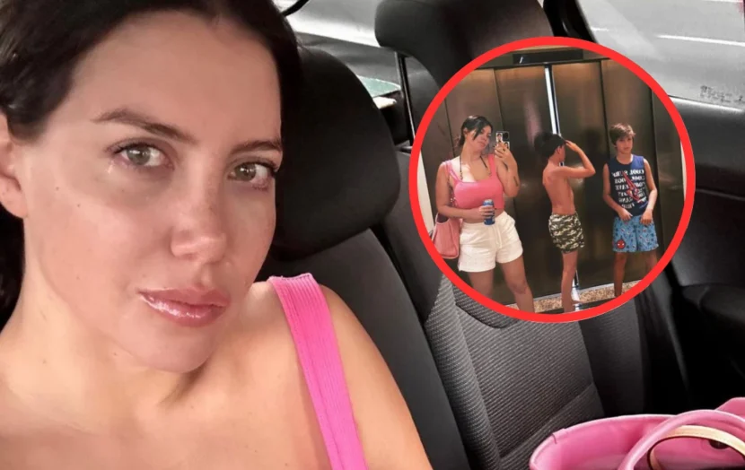 Al estar con mucho trabajo en la semana, el finde lo pasa con sus grandes amores, sus hijos. En una imagen que subió a su historia de Instagram, se la puede observar en un ascensor junto a dos de sus cinco hijos con un look muy de entrecasa. Se sacó el glamour para ponerse cómoda y descansar cómodamente.