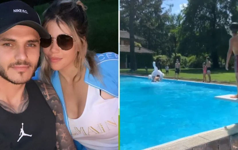 En la seguidilla de imágenes que compartió Wanda puede apreciarse la enorme pileta que tienen para disfrutar que cuenta con un trampolín.