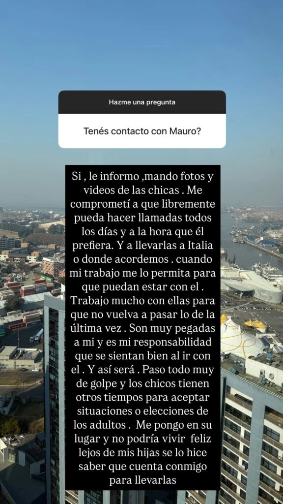 En su mensaje, Wanda también aseguró que está dispuesta a acompañar a las niñas a donde sea necesario para que puedan estar con su papá: “A llevarlas a Italia o donde acordemos, cuando mi trabajo me lo permita. Y así será”, prometió.