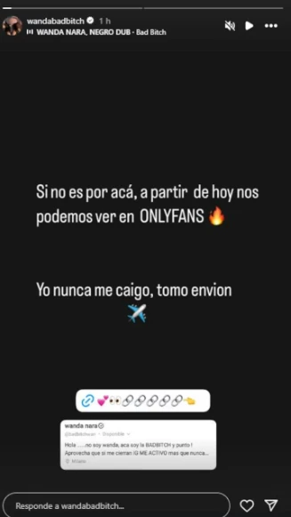 Resulta que la medida no cayó nada bien en Wanda, que ya le pidió a su abogado Nicolás Payarola que se apele contra esta decisión de la Justicia. Y mientras el letrado trabaja para que le vuelvan a habilitar las redes, la mediática publicó una serie de historias en una de sus perfiles secundarios para informar que se abrió su página de OnlyFans.