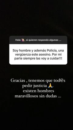 Pero no solo las mujeres se pusieron de su lado, sino que también un hombre le escribió que él trabajaba como miembro de la policía y que considera “una vergüenza al asesino de Úrsula”, por lo que por su parte, siempre cuidará del sector femenino. Cálida, la ex pareja de Maxi López le agradeció y le remarcó que “existen hombres maravillosos sin dudas”, y que “todos tenemos que pedir Justicia”.