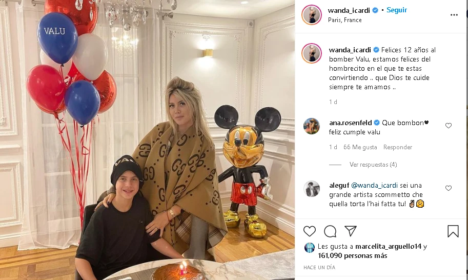 "Felices 12 años al bomber Valu. Estamos felices del hombrecito en el que te estás convirtiendo. Que Dios te cuide siempre, te amamos", fue el mensaje que Wanda Nara usó para publicar la imagen con la que sorprendió.