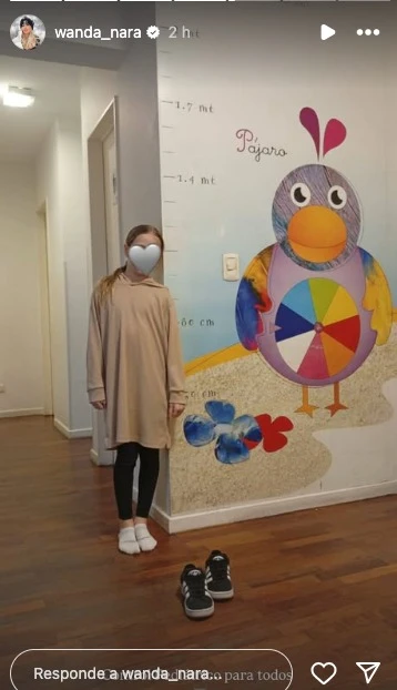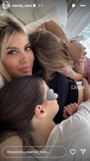 “Llegué”, fue la primera historia que publicó Wanda, junto a sus dos hijas acostadas con ella y tapando el rostro de ambas con un emoji de corazón. Esto se debe a lo que impuso la justicia en fin de preservar la privacidad de las niñas y de esa forma evitarse multas.