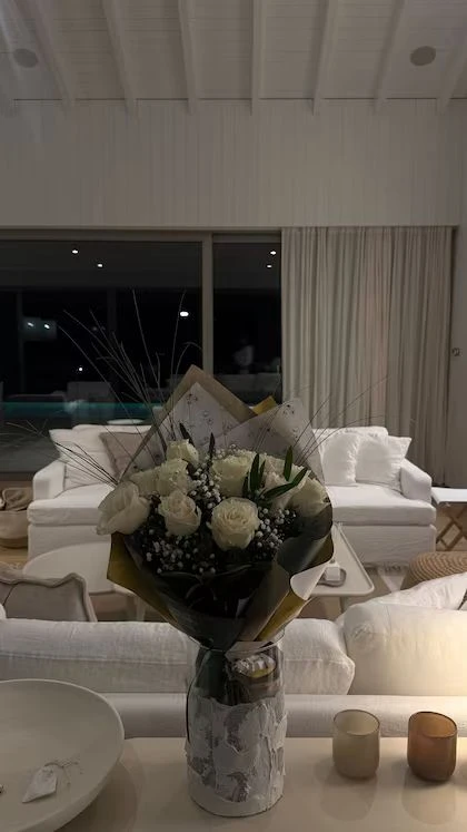 Asimismo, entre fotos y videos que fue subiendo a sus redes sociales, la ex conductora de Bake off mostró que había un ramo de flores, un portaretrato con la foto de ella y sus 5 hijos en un rincón de un espacioso y cálido living con grandes sillones sobre los cuales se recostó para charlar con quienes la acompañaron en el viaje.