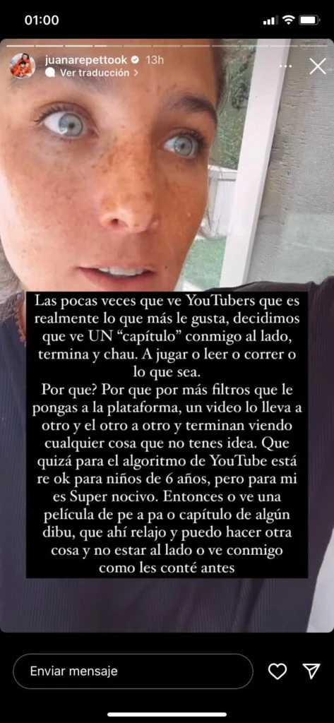 Finalmente, Juana explicó el por qué de esta drástica medida que tomó con su hijo. “Porque por más filtros que le pongas a la plataforma, un video lo lleva a otro y termina viendo cualquier cosa. Para mi es super nocivo. Por ahí terminan viendo algo que es grave”, cerró.