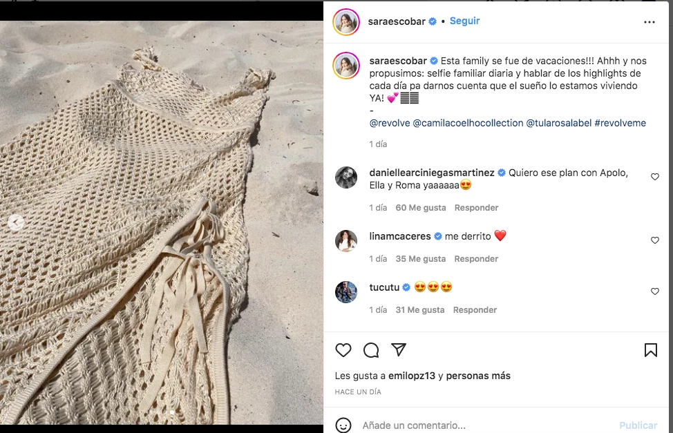 A través de la cuenta de Sara en Instagram se puede percibir al detalle cada uno de los pasos del matrimonio en este plan de esparcimiento. De hecho, Escobar se propuso registrar fotos y videos de cada uno de los días para construir un diario del viaje.