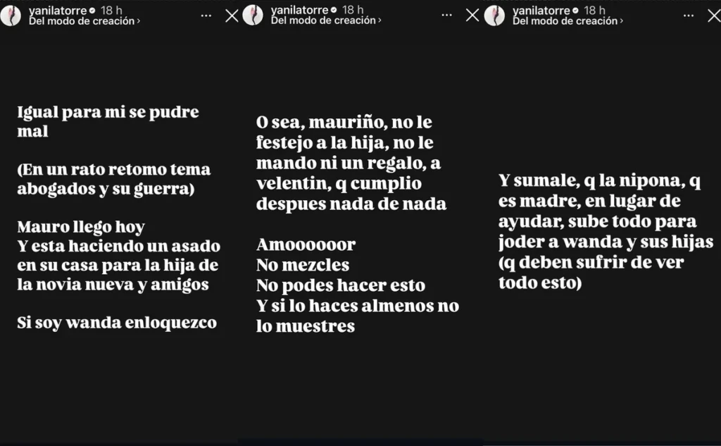 Yanina Latorre, desde Miami, contó en sus redes detalles de la celebración y criticó fuerte a Icardi. “Mauro llegó hoy y está haciendo un asado en su casa para la hija de la novia nueva y amigos. Si soy Wanda enloquezco”, escribió la panelista en sus historias de Instagram.