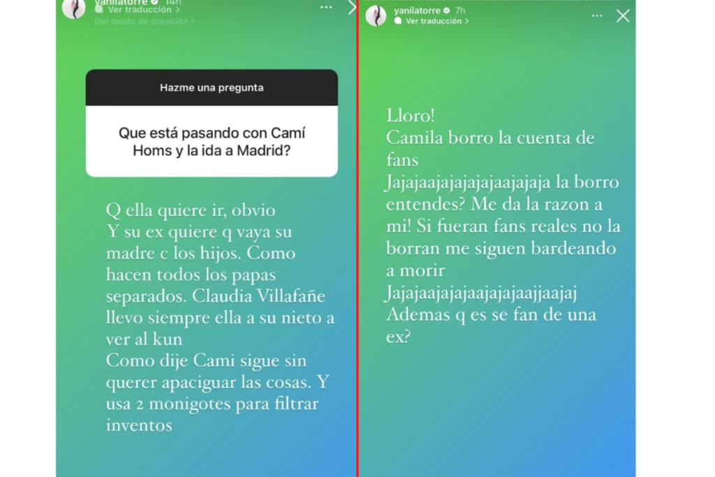 Además comentó una situación que vivió con una cuenta de fans de Camila Homs: "Recién una cuenta trucha que maneja Camila Homs me bardeó. Le contesté y borró las historias. Ya subo lo que borró! Avisenle a Camila Homs que si va a bardear que se banque la respuesta ¿O solo se hace la viva en pe… en Punta del Este?", disparó de manera contundente afirmando que en realidad es Homs quien maneja la cuenta.