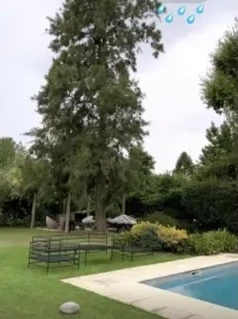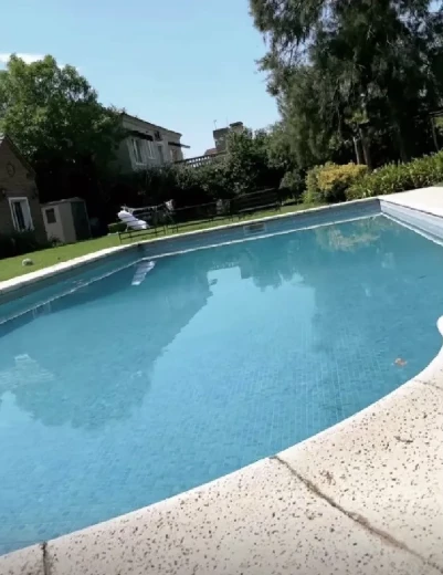 Con una increíble piscina, una arbolada espectacular que no solo brinda un poco de fresco en los asfixiantes días de calor, sino que también le brinda privacidad a la familia, de algún que otro vecino indiscreto del exclusivo barrio privado que viven (en la localidad bonaerense de Pilar).