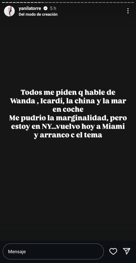 "Todo me piden que hable de Wanda, Icardi, la China y de la mar en coche me pudrió la marginalidad, pero estoy en Nueva York, vuelvo hoy a Miami y arranco con el tema. Solo les digo que L-Gante es el más vivo de la historia, pájaro que comió, voló y tomó el palo", comenzó Yanina sobre Wanda.