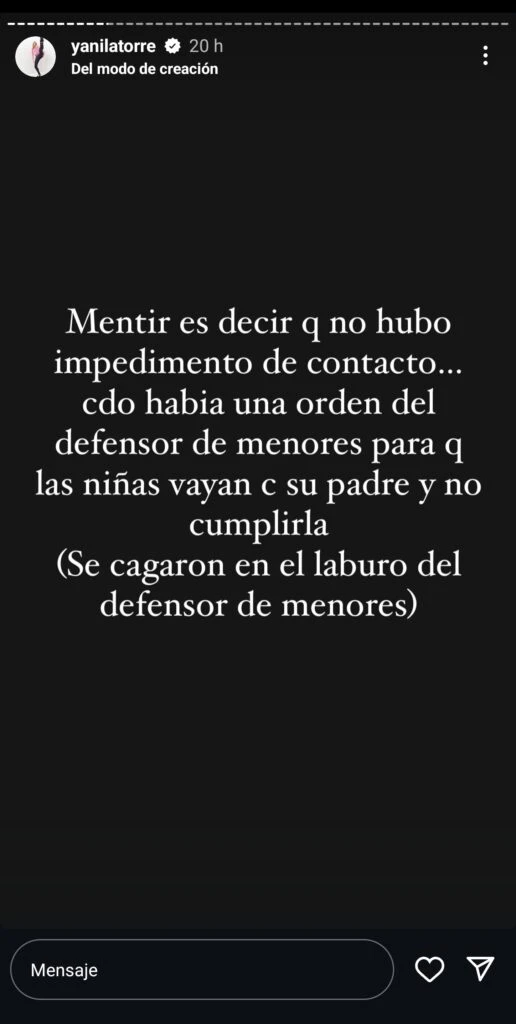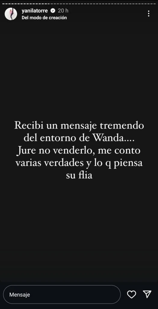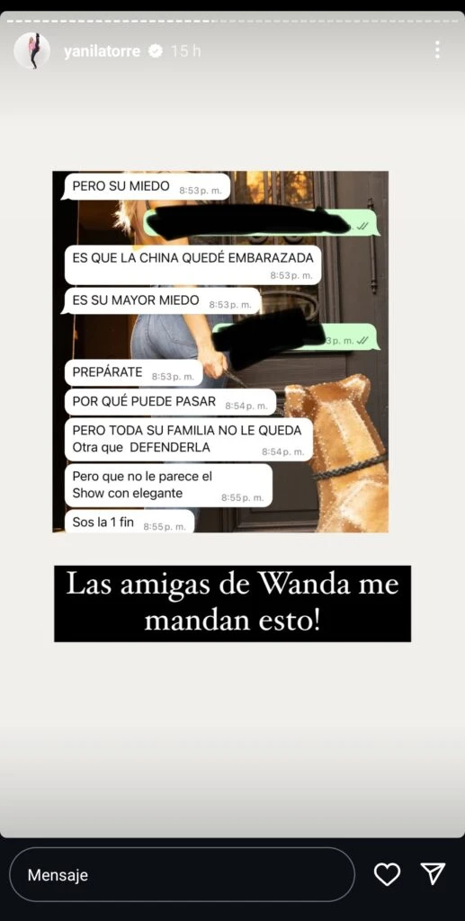 Y Yanina agregó: "Wanda dice que soy operadora y mentirosa. Hoy te demuestro que no. Operar es usar a gente para filtrar chats mentirosos. A los chats les faltan partecitas. ¿Por qué Wanda puede subir chats, que tiene prohibido por la Justicia, y Pia y Analia no pueden hablar del tema?”.