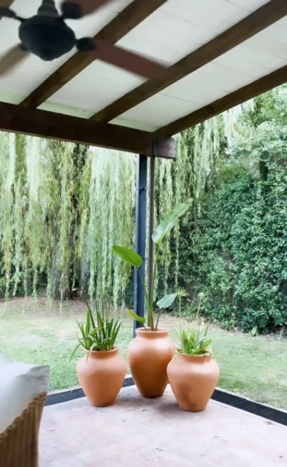 La hermana de Wanda Nara mostró cada rincón de su hogar, que se destacó al colocar distintas plantas de interior del estilo: enredaderas en macetas, que dispuso en una biblioteca industrial de hierro, un centro de mesa transparente con agua y jarrones rústicos de color terracota, que ubicó en su patio con plantas de hojas más grandes.