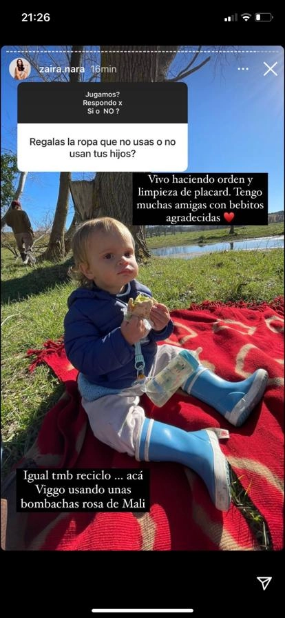 A lo que Zaira contestó: “Vivo haciendo orden y limpieza de placard. Tengo muchas amigas con bebitos agradecidas”. Con una tierna foto de su bebé ilustrando la historia, la modelo siguió: “Igual, también reciclo. Por ejemplo, acá está Viggo usando unas bombachas rosas de Mali”.